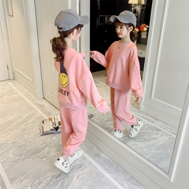 Girl's spring clothing suit 2022 new children suit Chaonets Red Ocean CUHK Scout Trendy Sports Girl Clothes