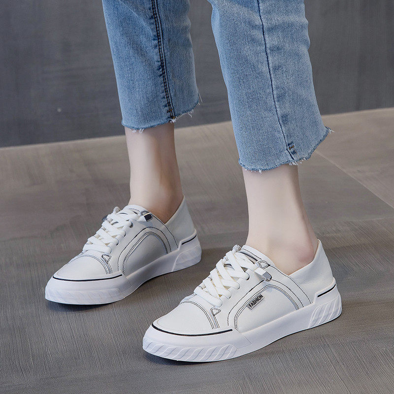 Leather small white shoes in the spring of 2022 new breathable floor with leisure plate shoes in the tide