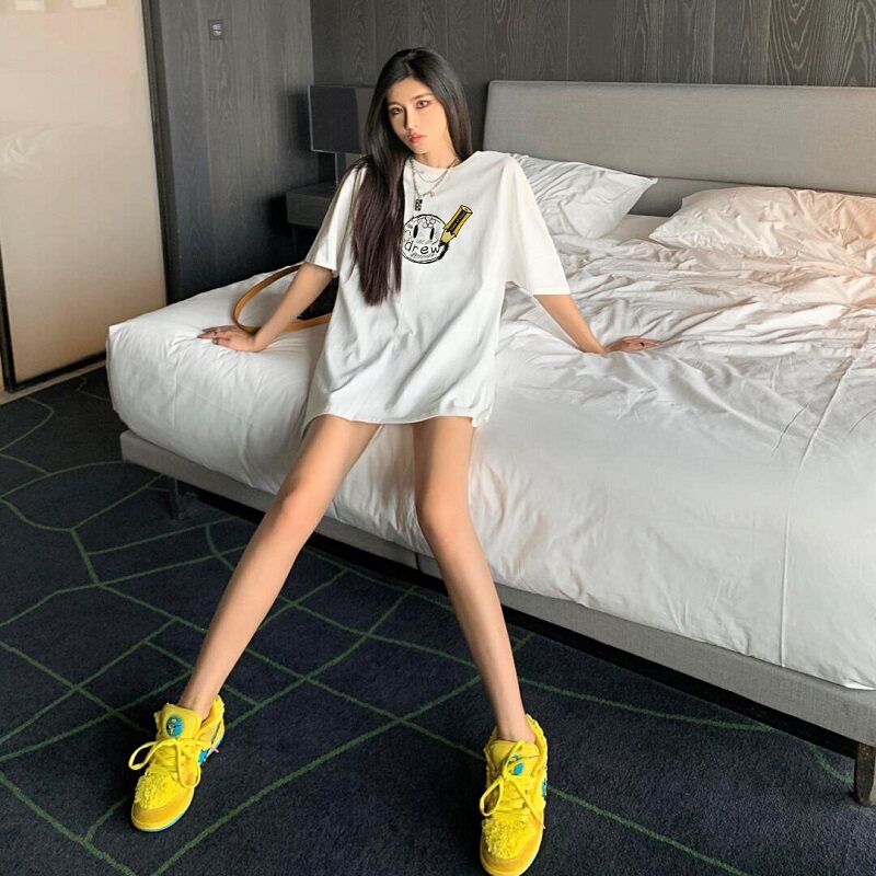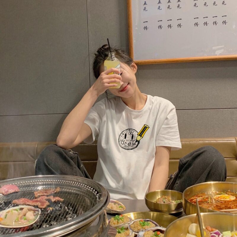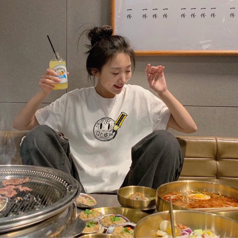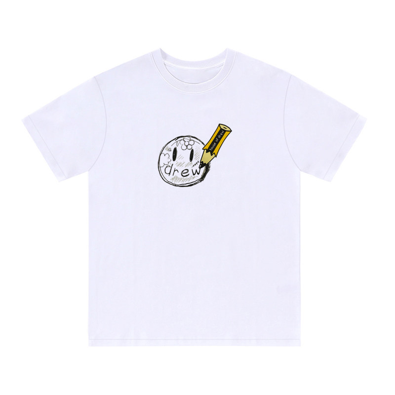 Drew smiley hand drawn pencil men's and women's fashion brand FOG high Street trend loose and wild cotton simple short-sleeved T-shirt