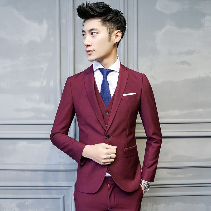 Men's suit three-piece suit for teenagers Korean version of the groom's wedding dress single suit jacket slim fit small suit male