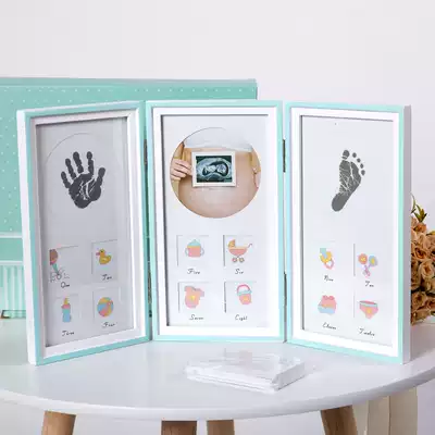 Moe Ji baby hand-foot mark commemorative frame Baby Full Moon one year Hundred Days hand and foot print one year birthday commemorative photo frame