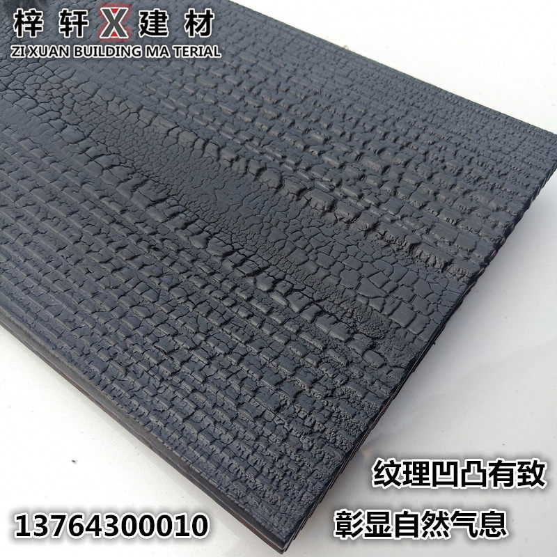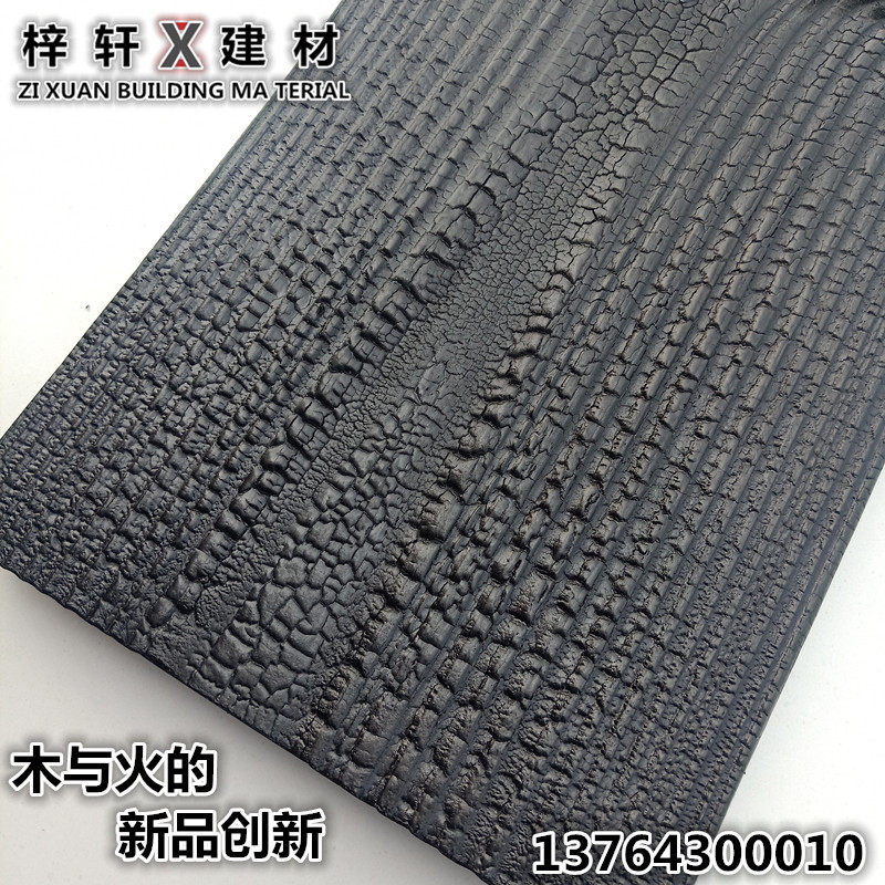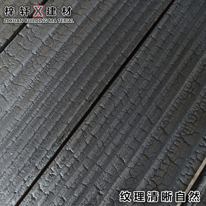 Deep carbonized wood black wood grain burned fir board solid wood fire charcoal vintage shop sign ceiling wall background decoration
