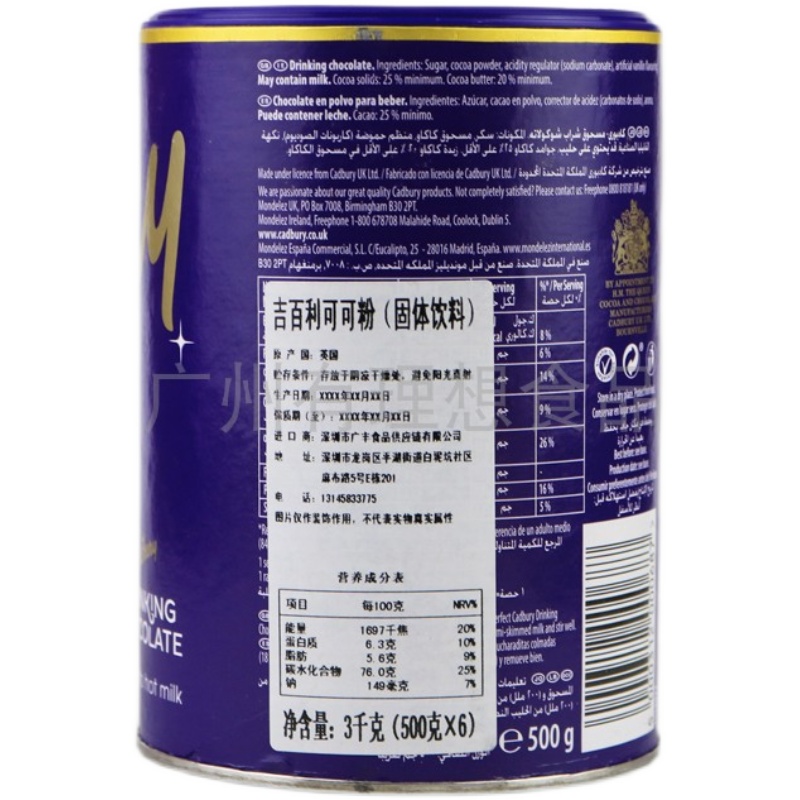 UK Giblei Chocolate Powder 500g * 6 cans Cocoa Powder Coco Powder Hot Chocolate Drinks Imported for Brewing Drink
