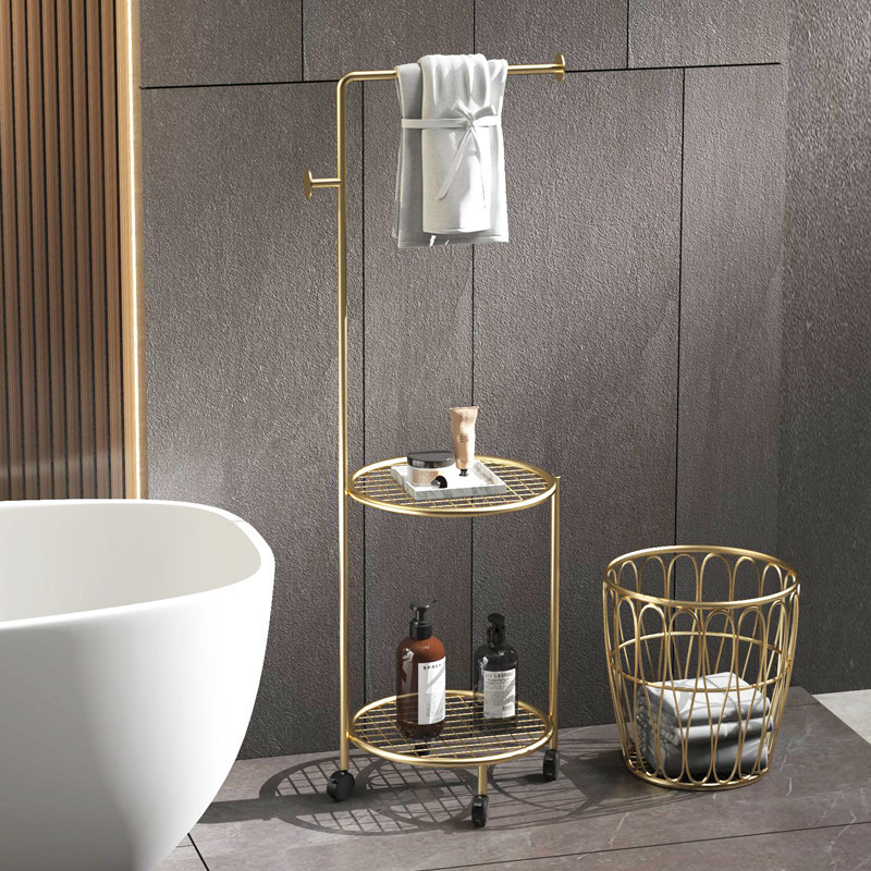 Light Extravagant Makeup Room Shelving Ground Wash Terrace Iron Art Towel Rack Gold Free Punch Mesh Red Bathroom Shelf