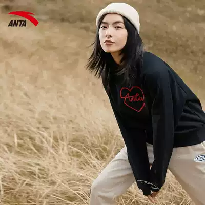 Anta vests female 2021 spring new round neck pullover sports leisure loose trend Joker Lady thick T-shirt