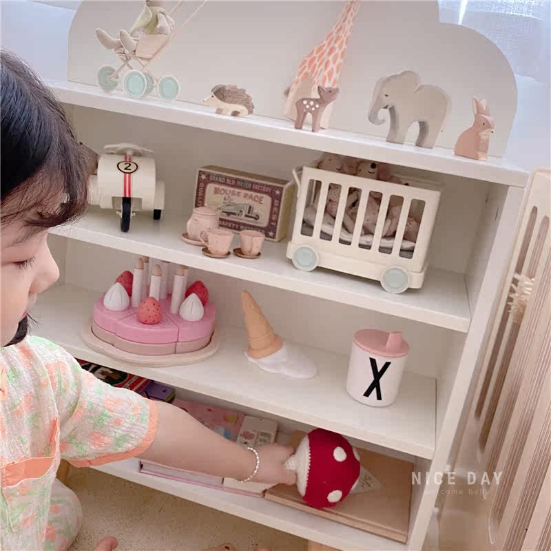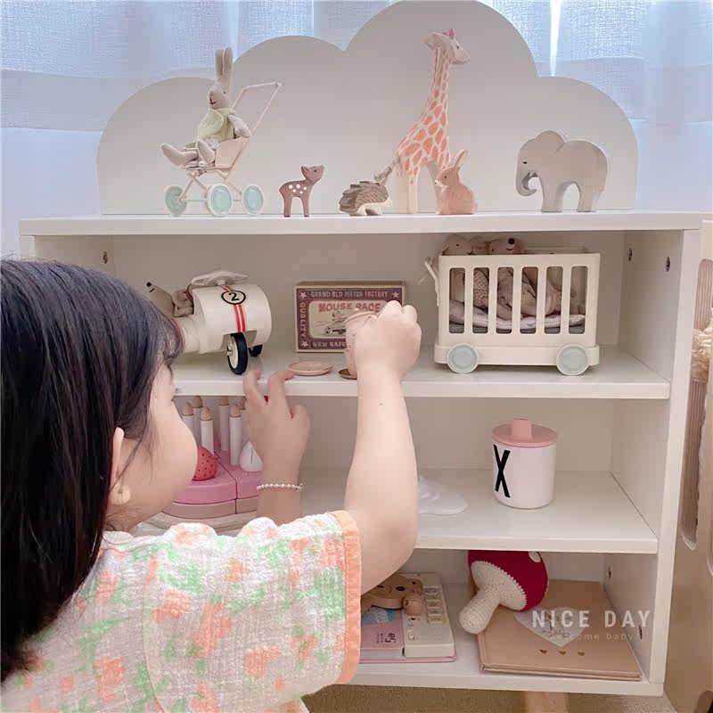 Korea ins children's bookshelf baby toy storage rack household tidying cabinet cloud solid wood shelf