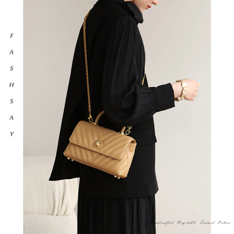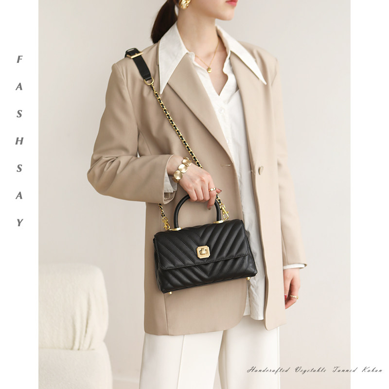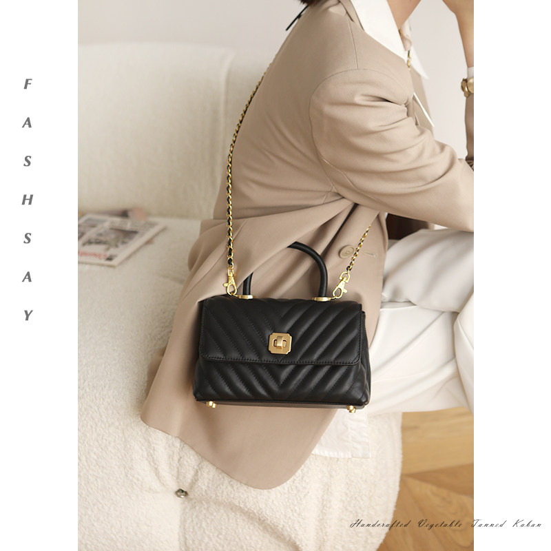 Fashsay ladies leather summer luxury temperament exquisite texture chain portable messenger dual-use small bag