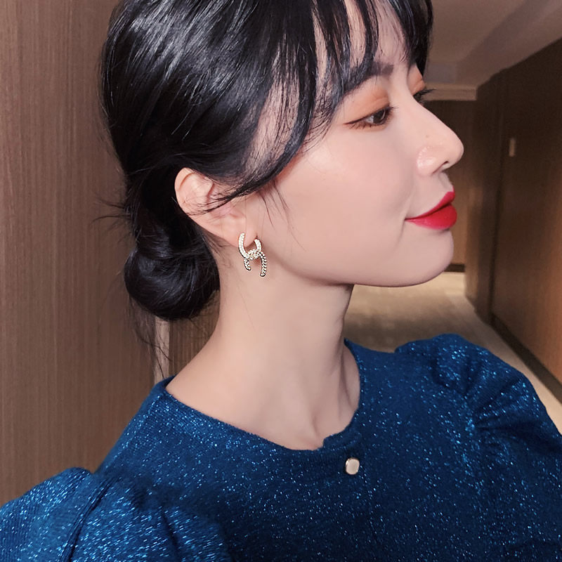 Caring Koko ~ cross-net red explosive with ear pin and European and American wind earrings 2021 New wave women's earrings