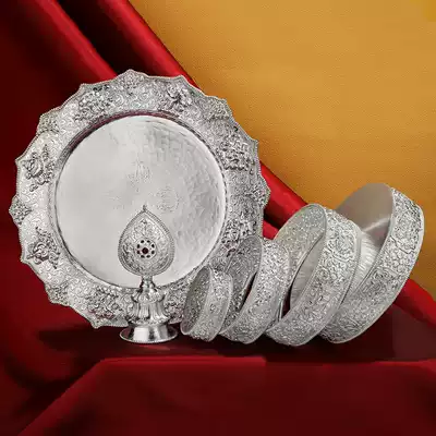 Foot silver s990 Tibetan Manza plate sterling silver plating 24k gold full set with tray large sterling silver Manza plate