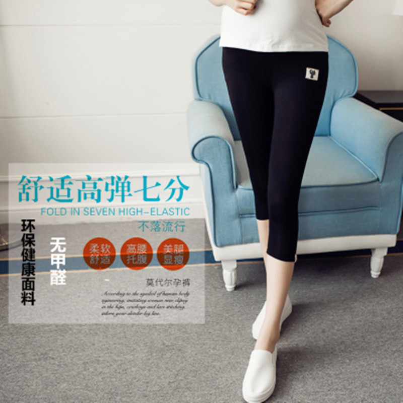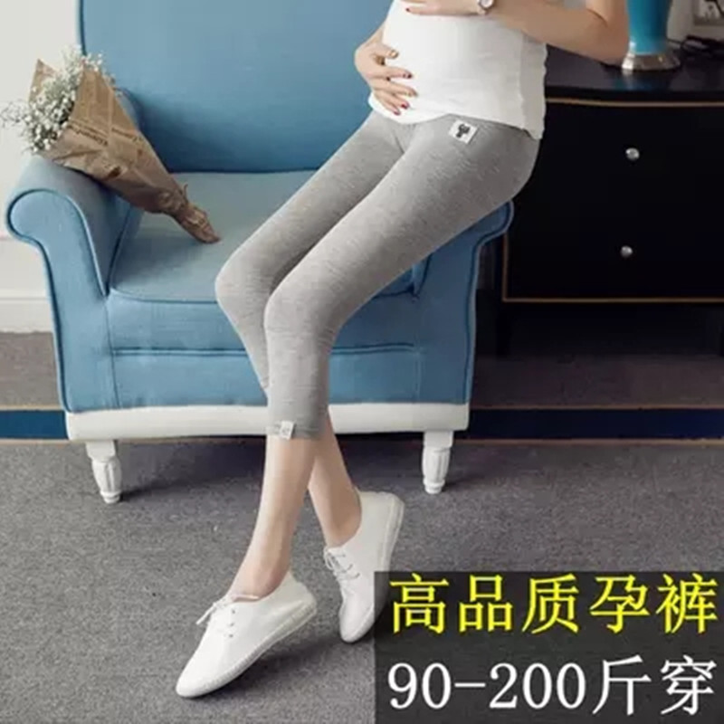 Summer new maternity stretch support abdominal pants pregnancy bottomed cropped pants large size safety pants pregnant mom cotton pants