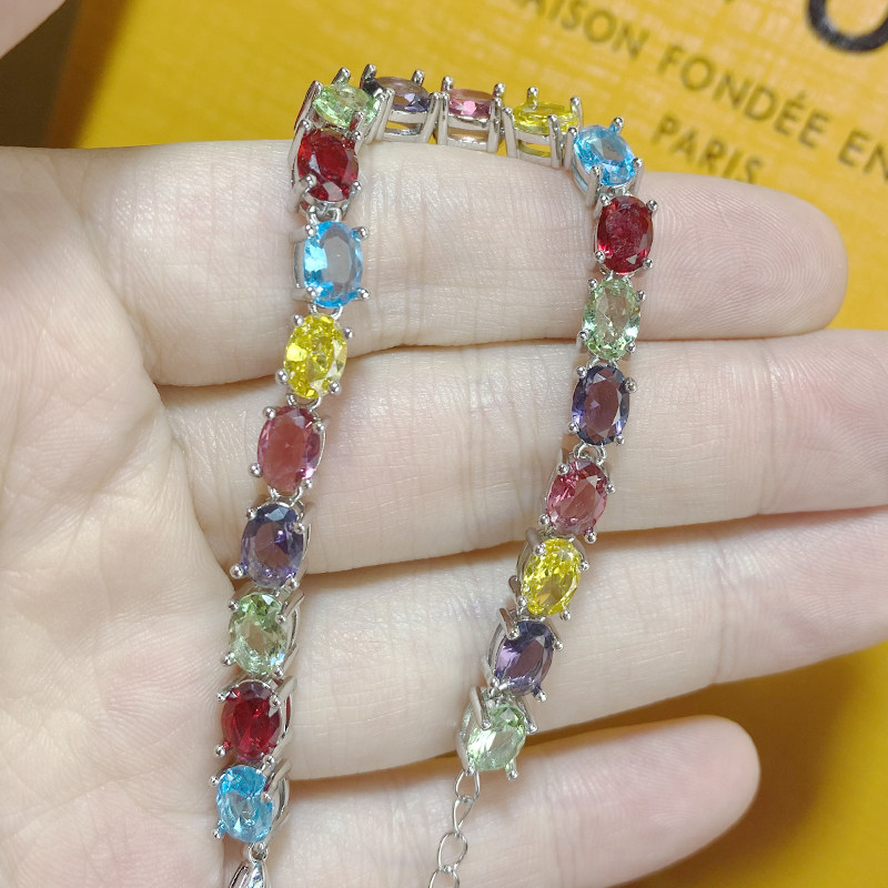 Marry Tibetan niche design vibrato live color gemstone bracelet Xinjiang Western Regions wind full of diamond egg-shaped bracelet