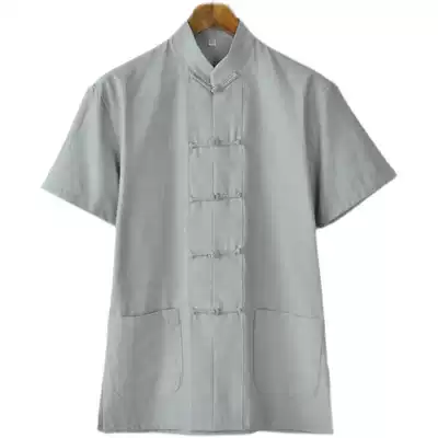 Chinese style Tang suit summer Chinese style buckle shirt men's short-sleeved top pure cotton loose casual half-sleeved men's clothing
