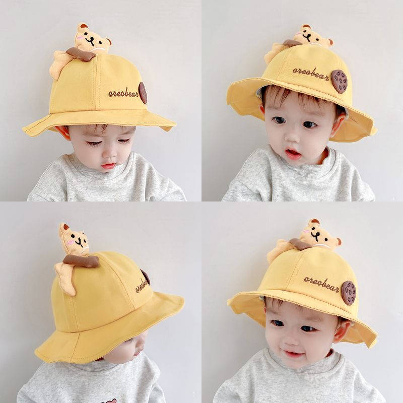 Baby fisherman hat baby spring and summer thin section cute bear sun hat children embroidery cartoon pot hat spring wide brim