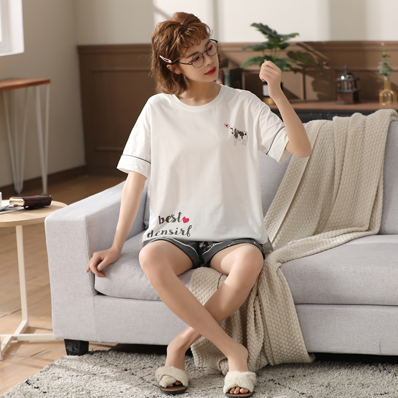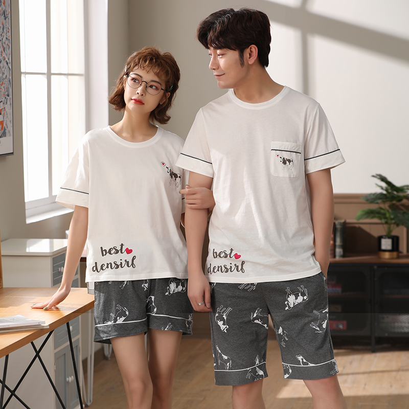 Couple Nightgown woman 2021 new Han edition summer thin cotton short - sleeved shorts home suit male