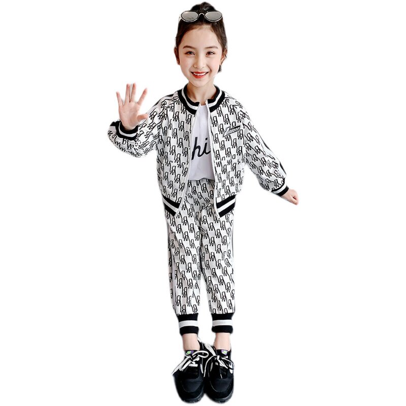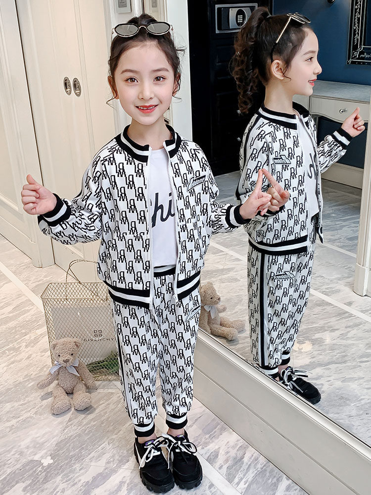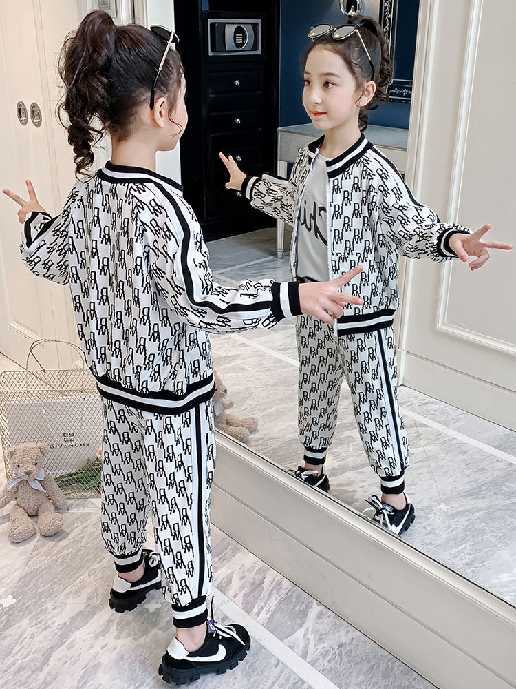 Hong Kong Tide Girl Spring and Autumn 2021 New Children's Clothing Yang Girl Costume two pieces of Children's Sports Clothing