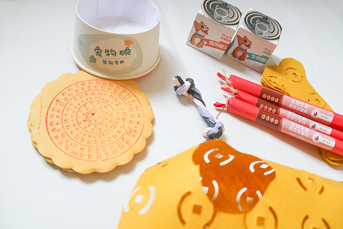 New Pint Pet Sacrifice Package Dog Eating Basin Clothes Ham Meditation Yellow Paper Burning Paper Head Seven Dogs Passed Away