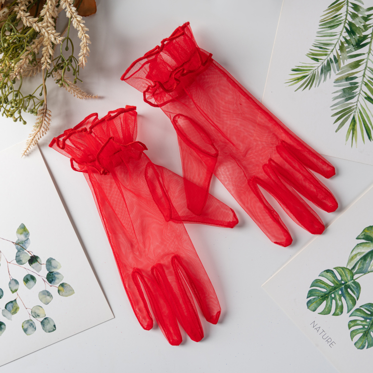 Bride Gloves Wedding Red Gown short version Wedding Dress White Dress White Gown Black Sexy Web Yarn Retro Lolita