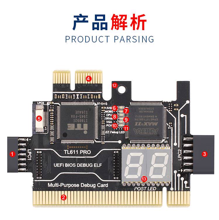 Desktop Computer Multi-purpose Debugging Card Computer Main Board Diagnostic Card PCIE LPC Notebook Failure Detection Test Card