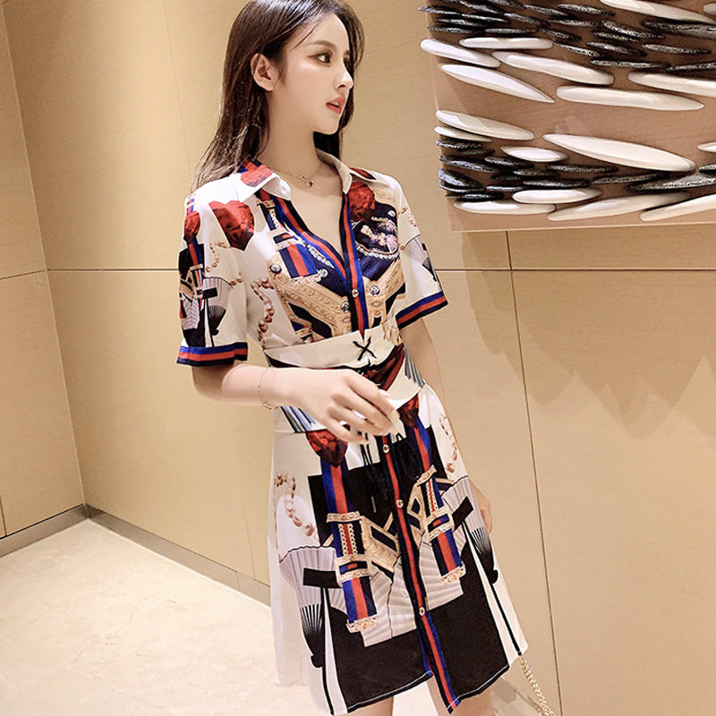 Korean version of fashion floral short-sleeved dress summer V-neck French corset slim irregular skirt