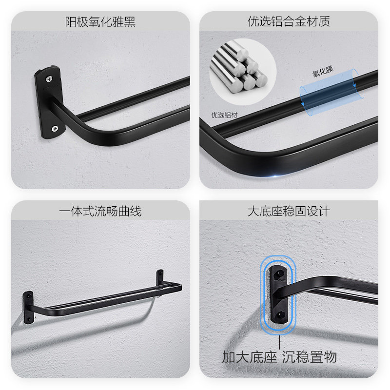 Nine Shepherd Kitchen Guard Official Flagship Store Double-Lever Bath Towels Towel Rack Aluminum Alloy Bright Aluminum Hanging Jacked Black Bathroom Shelve
