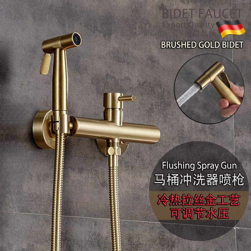 Eurostyle wire drawing gold hot and cold woman washers spray gun taps washing ass high pressure toilet dressing room to flush the god household