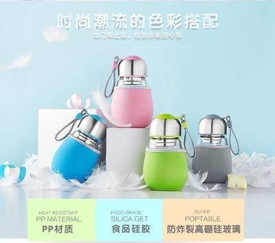 Glass portable Korean cute cup pupil Han Edition fresh and simple anti-fall teenage girl superbu water cup