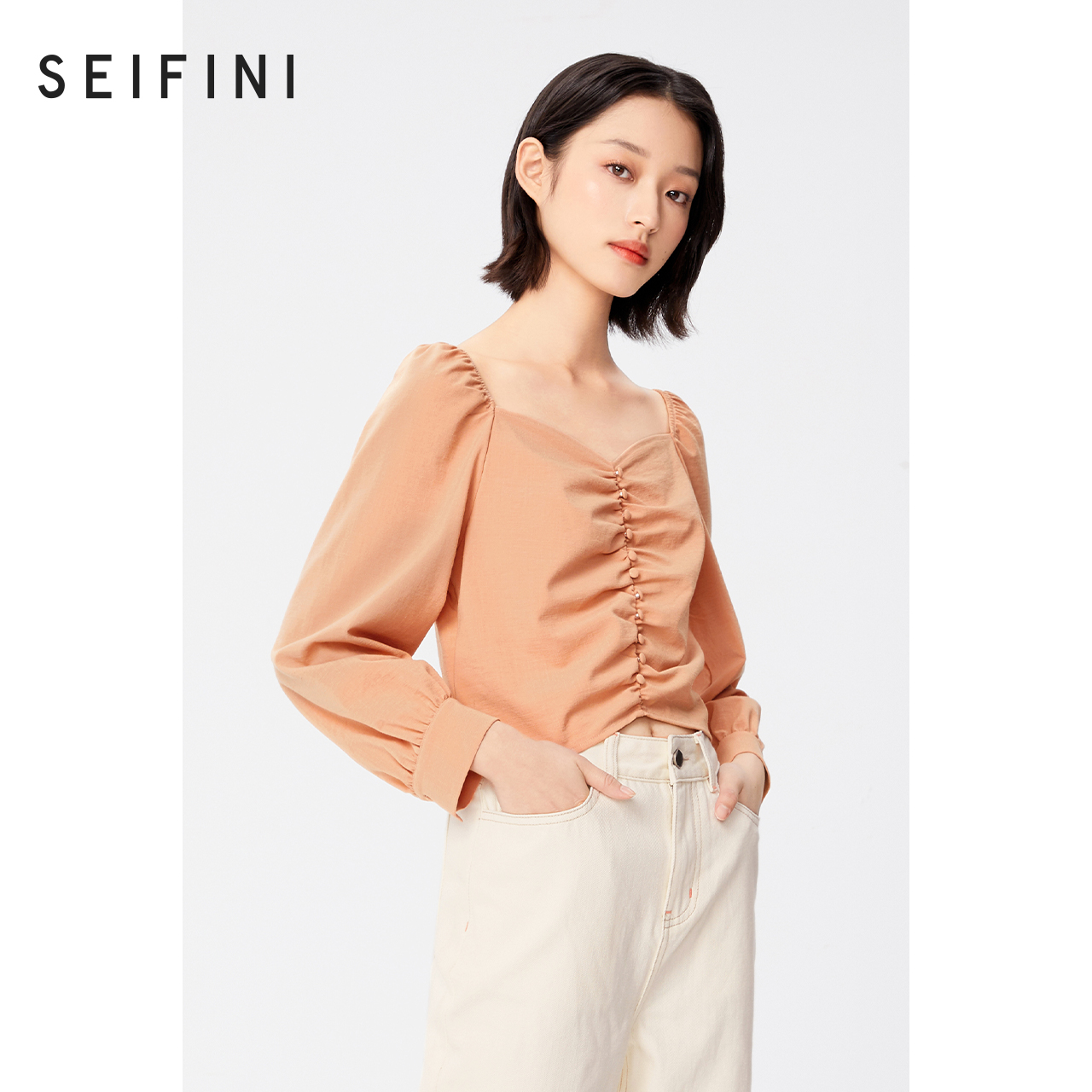 Mall's same Poetry Verses Shirt Shirt Girl 2022 New spring square collar Long sleeve shirt Female 3C3325291