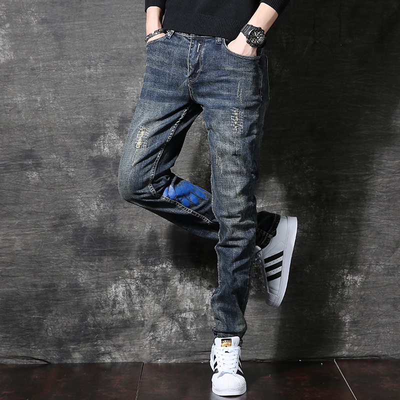 Embroidery washed for old press crumpled cat shall be inlaid with edge grinding edge bleached stone grinding holes Zdyeing batik with wax and hot stamping equine electric grinders with floral suspension and dyeing barefoot
