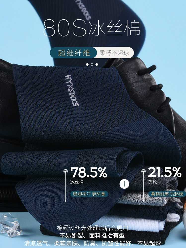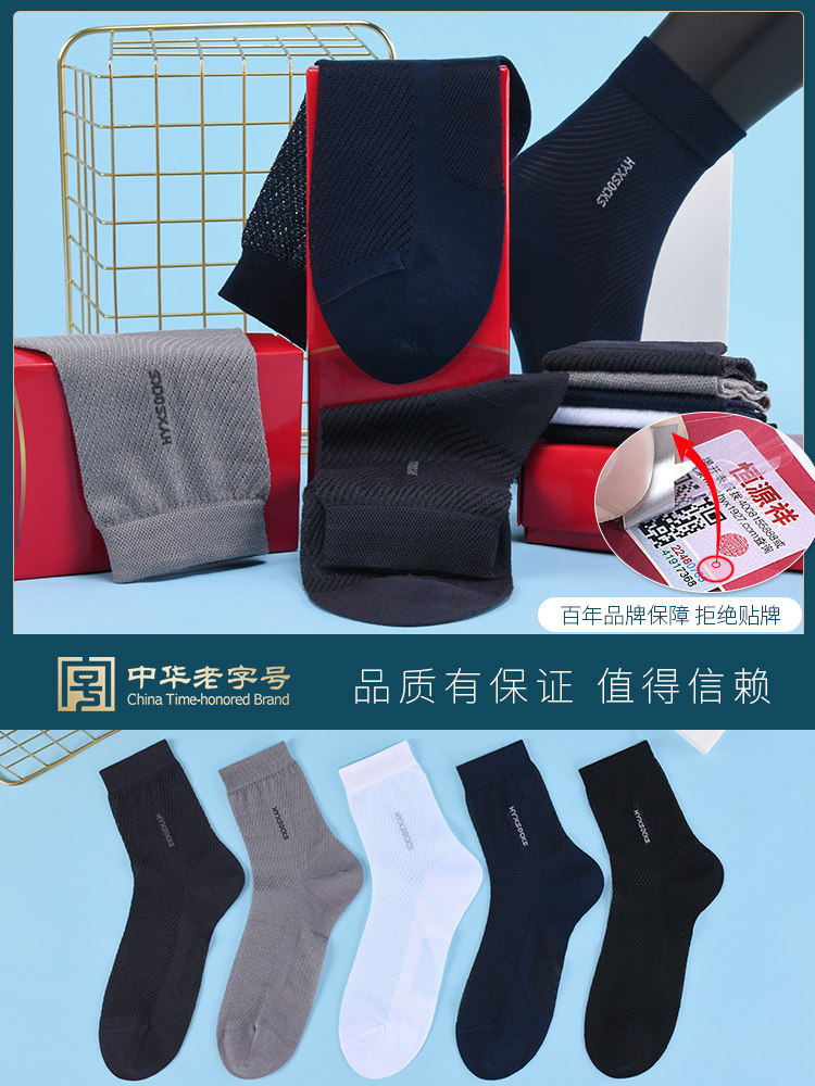 Hengyuanxiang mercerized cotton men's socks summer ultra-thin business deodorant sweat-absorbing breathable men's large size ice silk cotton socks