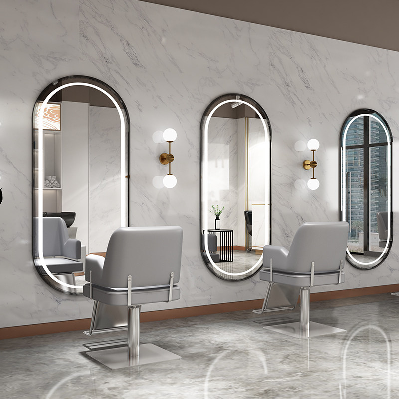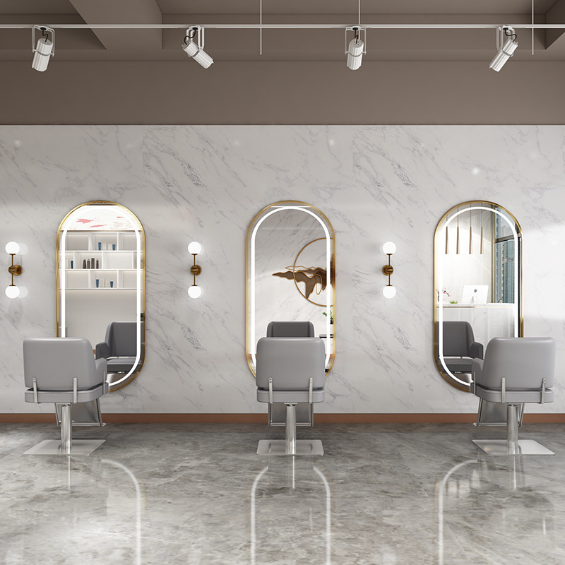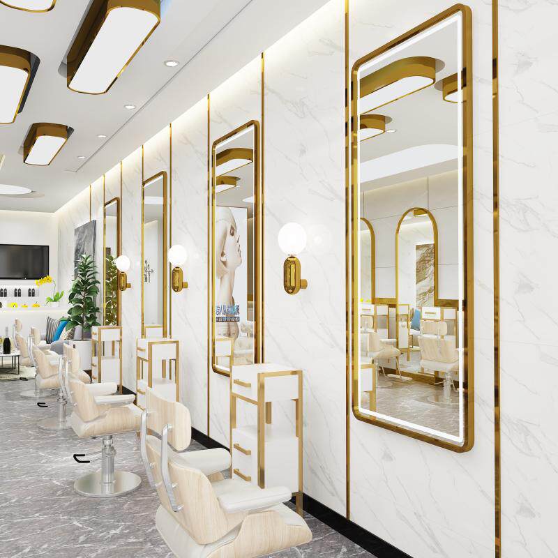 Hairdressshop Mirror Table Beauty Hair Shop Mirror Hair Salon Wall-mounted Bronzed Cut Hair Glasses With Lamp Hanging Wall Nets Red Tides