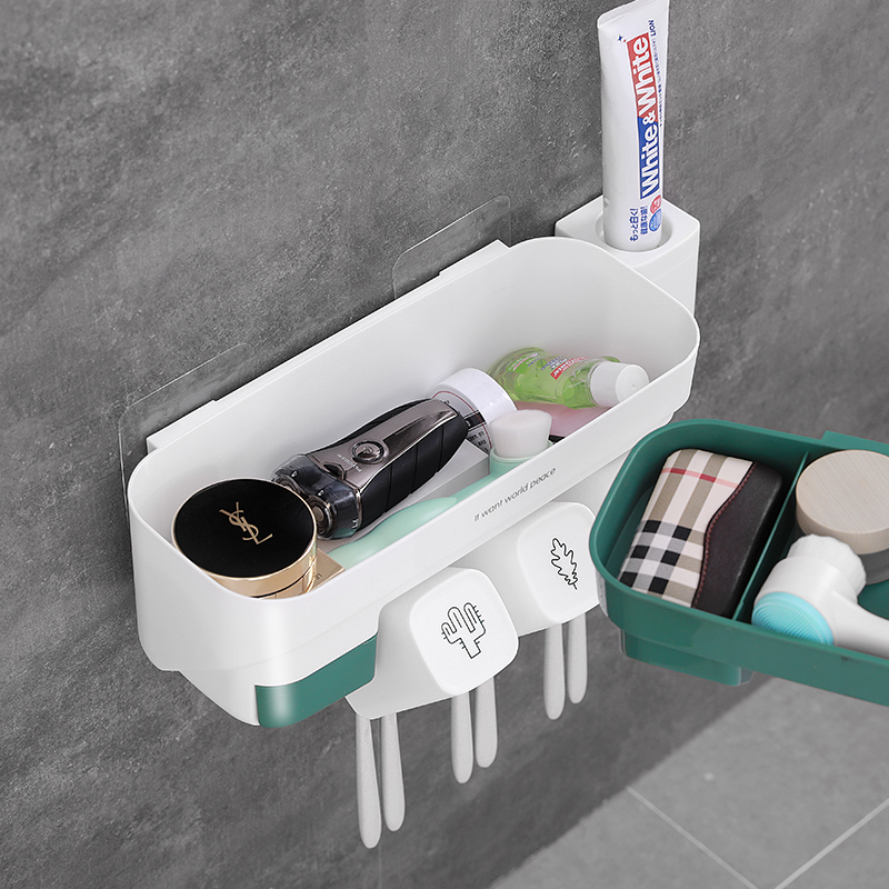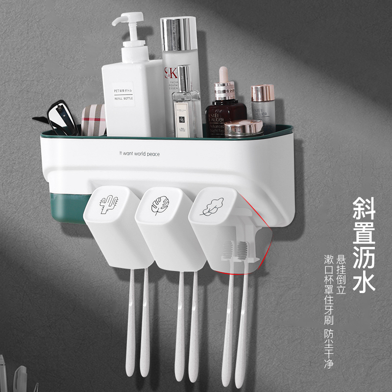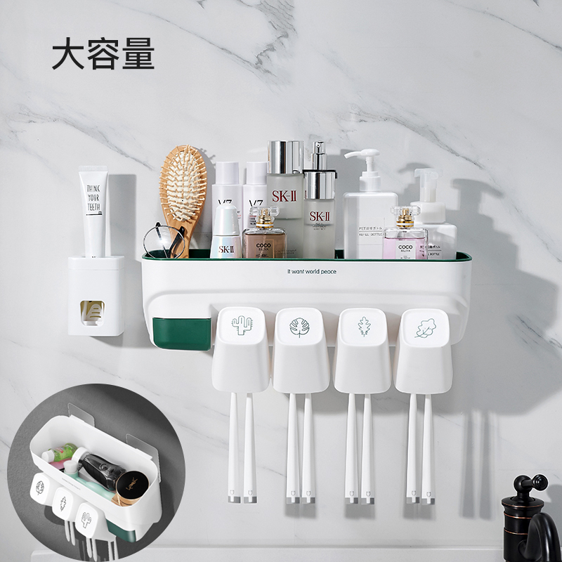 Toothbrush shelf Brushing cup mouthwash Wall-mounted powder room free hole wall-mounted net red storage shelf Tooth cylinder set
