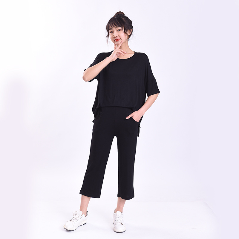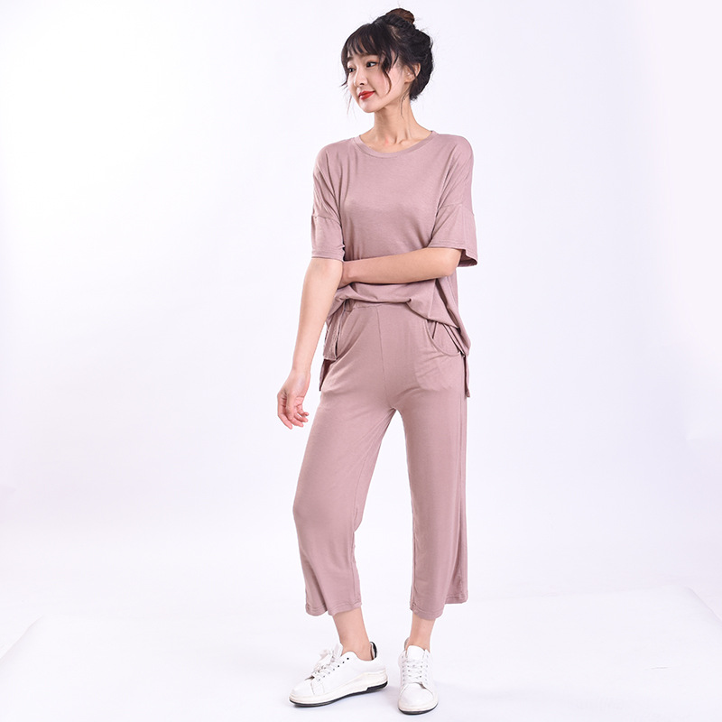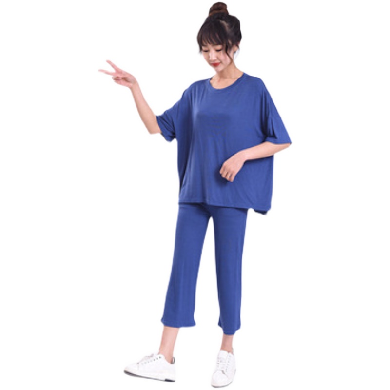 Large size set Modal short-sleeved pajamas seven points pajama pants women 240 loose 200 pounds fat mm outside the housewear