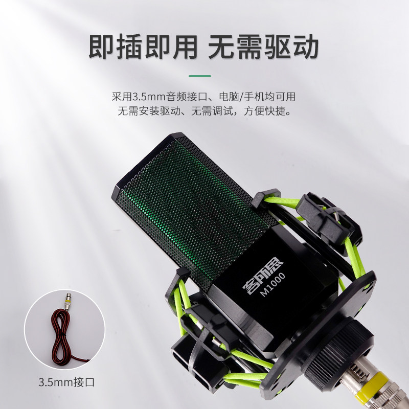 M1000 capacitive microphone Sound card singing mobile phone equipment Full set of equipment Computer desktop universal K song shouting microphone recording shaking sound repair artifact Fast hand net red microphone capacitive microphone