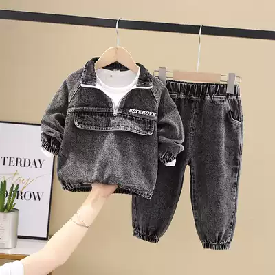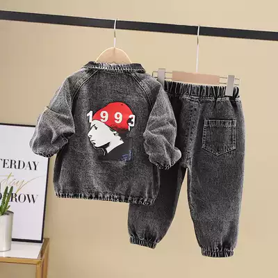 Korean boys spring suit 2021 New handsome red children's denim clothes fashionable baby spring and autumn