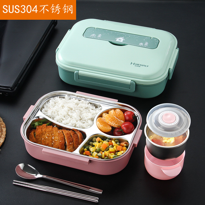 Color cover 304 steel compartment lunch box
