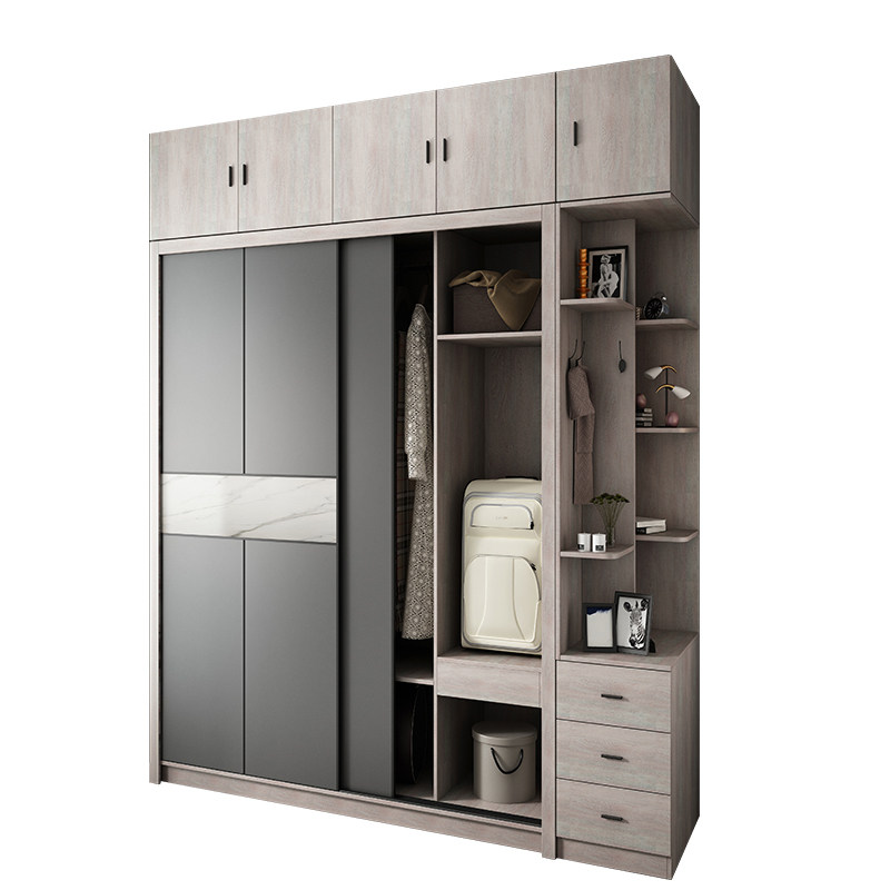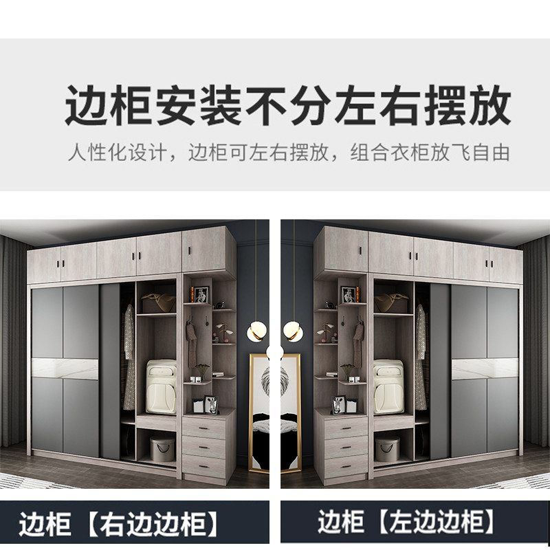 Wardrobe sliding door Nordic home assembly bedroom cabinet economical wooden storage cabinet light luxury sliding door wardrobe
