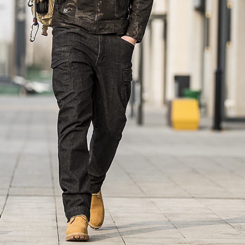 Ruling Officer Tactical Pants Male Spring Fall Loose Straight Barrel Multi-Pocket Outdoor Elastic Denim Jeans Men's Army Meme Pants