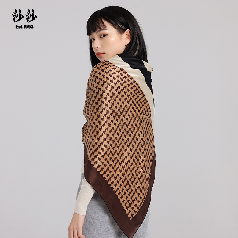 Salsa Scarf Shawl Women's Silk Scarf Simple Elegant Temperament Large Square Scarf Four Seasons Versatile Classic Houndstooth