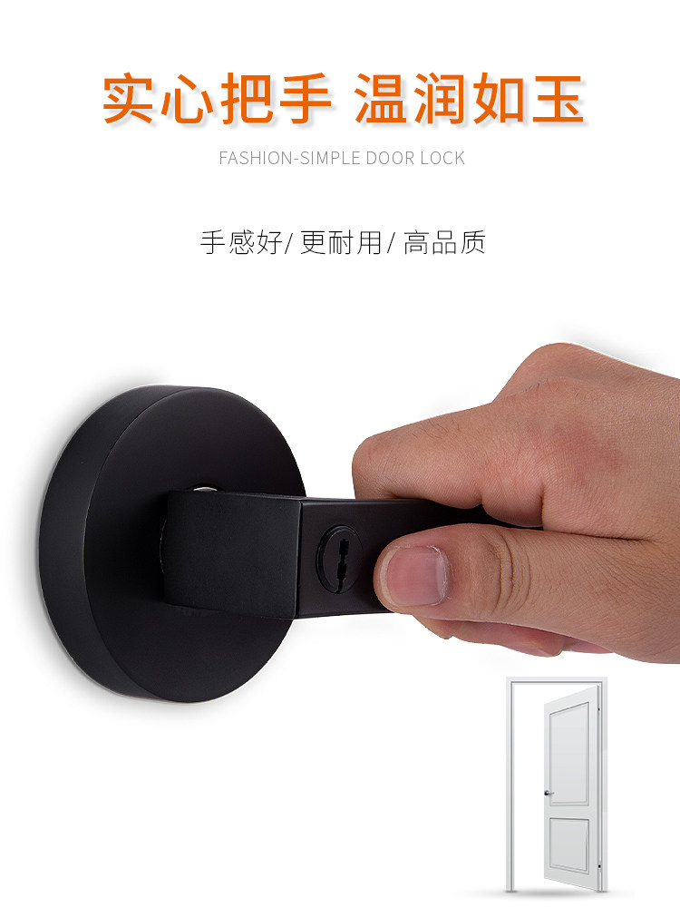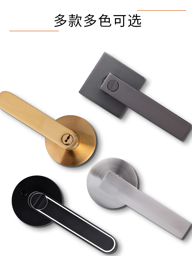 Bedroom door lock powder room door lock keyless three-bar single tongue hand lock indoor mute black universal