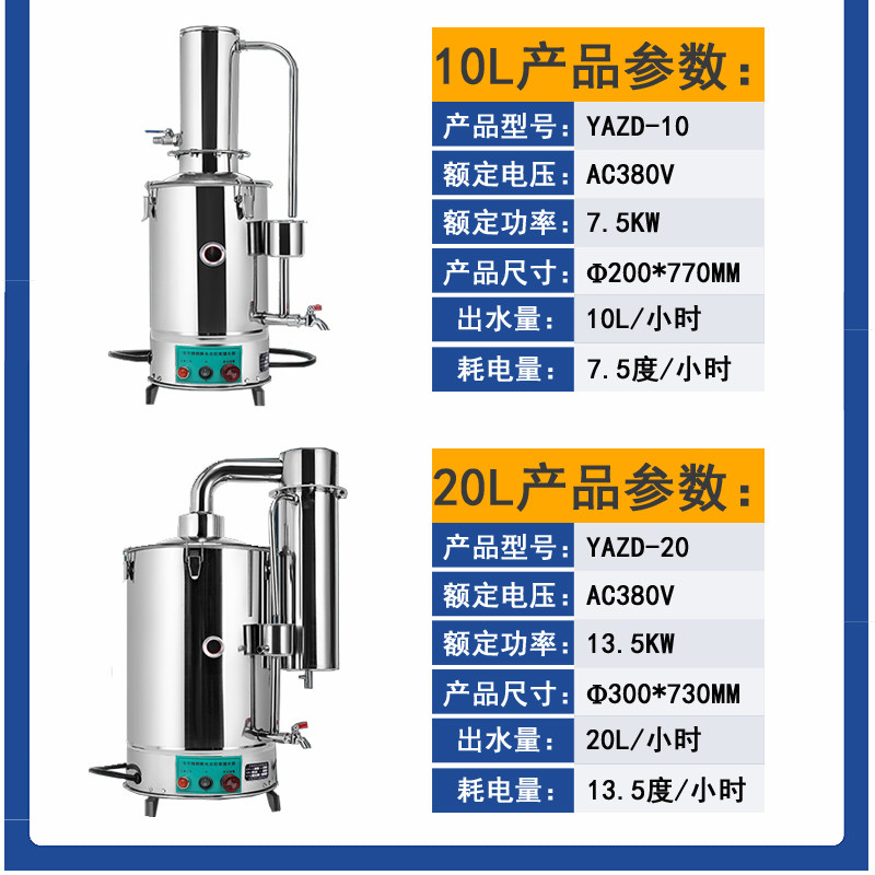 Stainless steel electrothermal water distiller laboratory distilled water water production machine device automatic control household medical battery water
