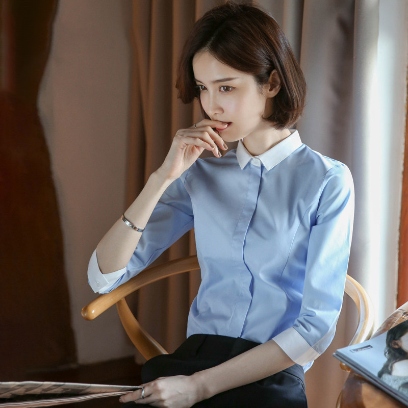 European station seven-point sleeve white shirt female design sense niche 2021 new summer Foreign style work clothes