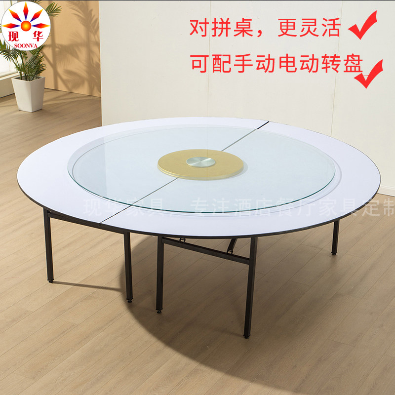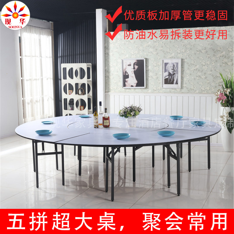 Hotel big round table restaurant 10 boxes restaurant white countertop 15 people PVC fire board folding round table commercial
