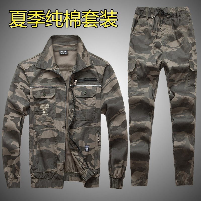 Summer thin working suit male cotton long sleeve camouflage clothing auto wear anti-hot welder service