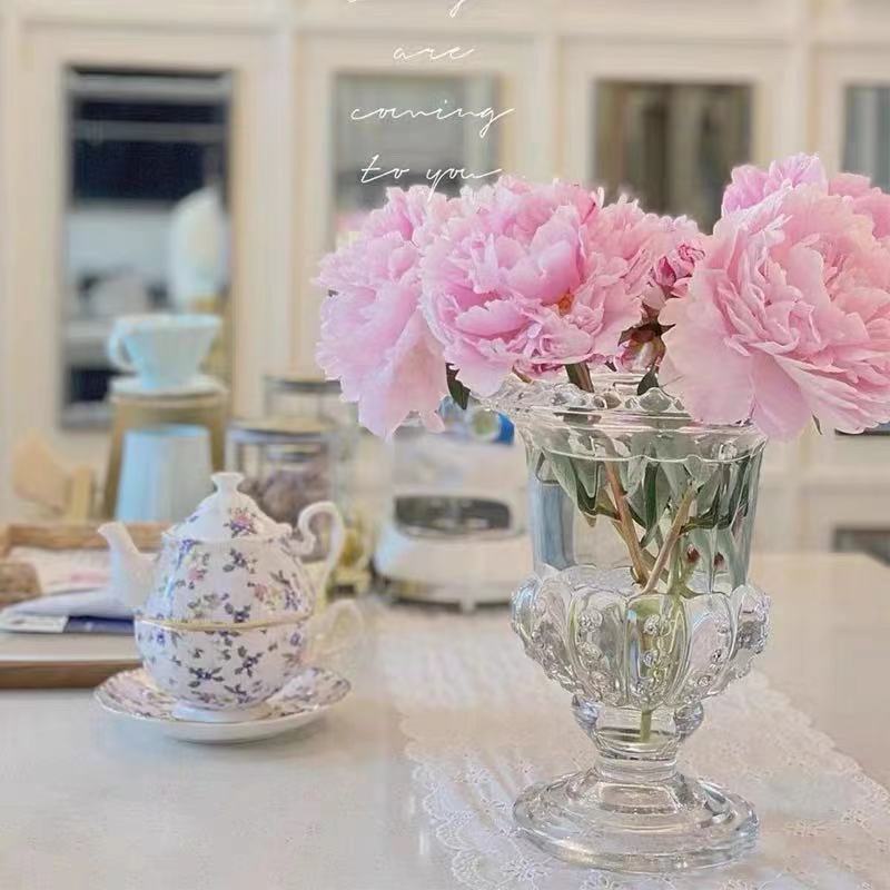 Net Red Retro Tracey West Relief Glass Vase Table Pendulum home Accessories Living Room Table Transparent Florist