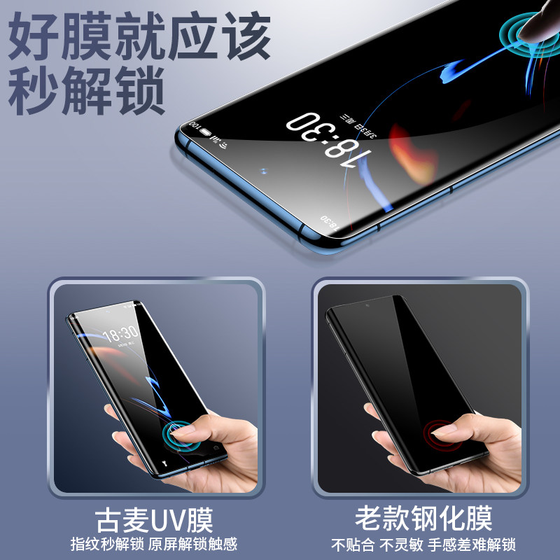 Meizu 18pro tempered film uv full screen coverage 18 mobile phone film Meizu hd glass full glue quantum curved screen protective film fingerprint hot bending por optical anti-blue light no white edge full lamination