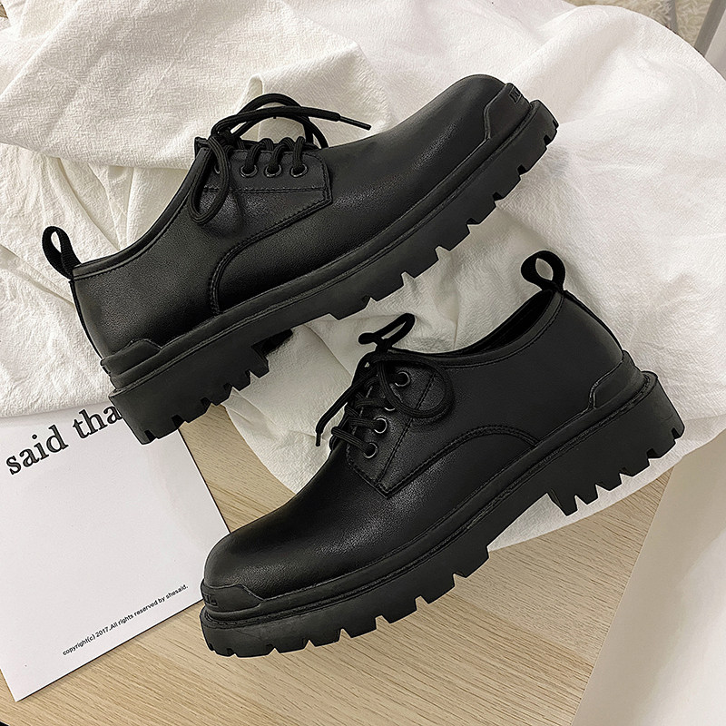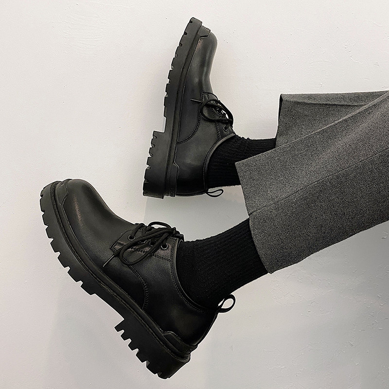 Fujiwara Nogawa original dk leather shoes uniform men's thick-soled small leather shoes British retro black trend lace-up shoes - Taobao