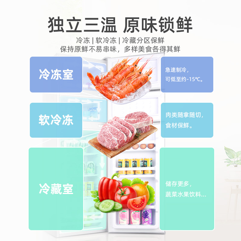 Zhigao 80 Liter Refrigerator Triple Door Home Small Office Room With Large Capacity Dorm Room Rental Soft Frozen Chilling