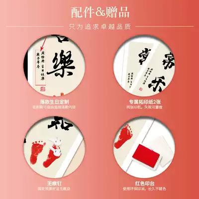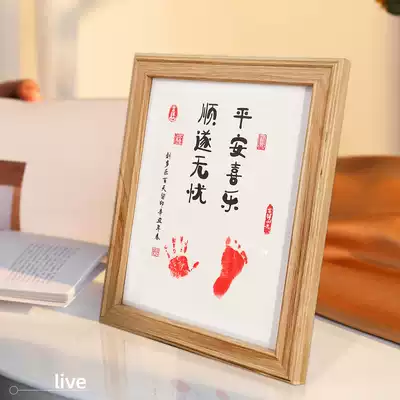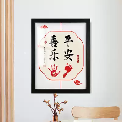 Contentment and joy Calligraphy and painting Baby footprints Year-old memorial little feet homemade footprints full moon gift Brothers and sisters deep love picture frame