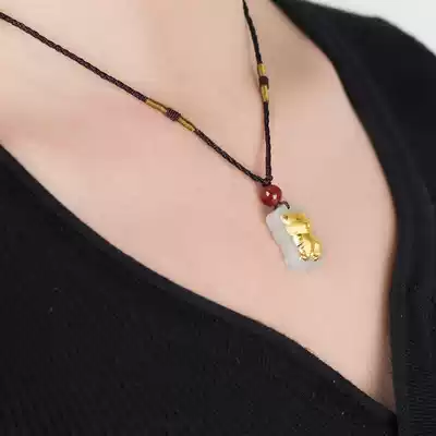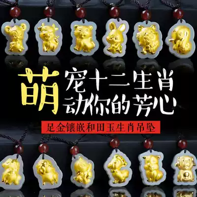 Gold inlaid white jade necklace Children's lock cute pet Zodiac pendant Wada pendant men's and women's patron saint natal cow