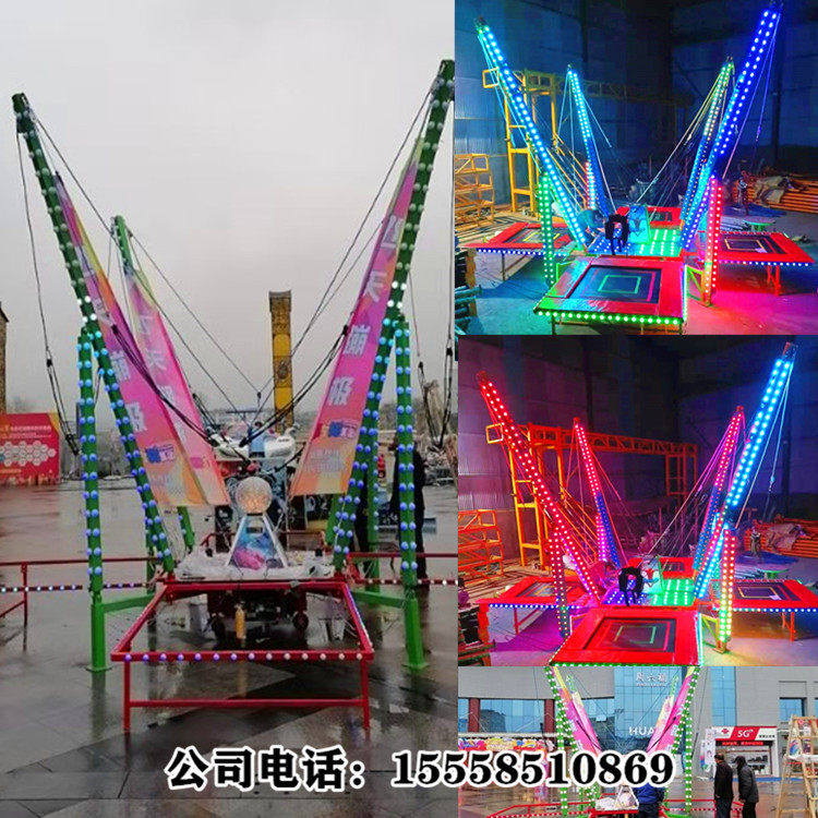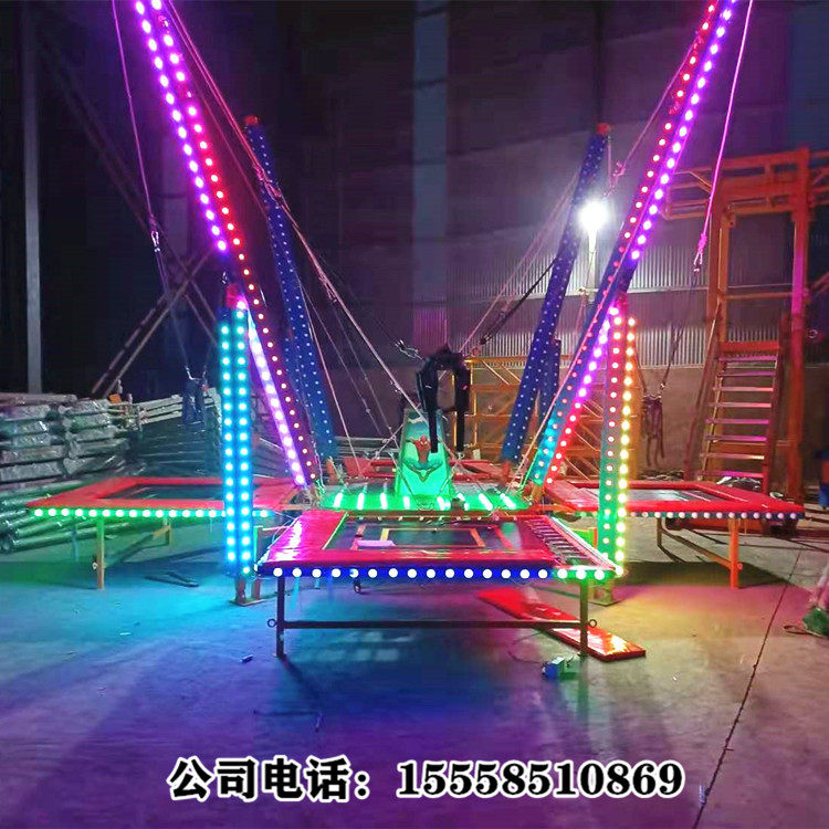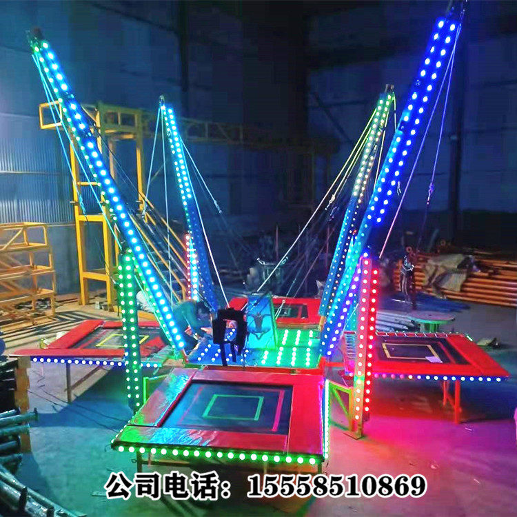 Square Park rental stalls colorful lights lighting bungee jump four people electric luxury bounce bed outdoor inflatable bungee bed